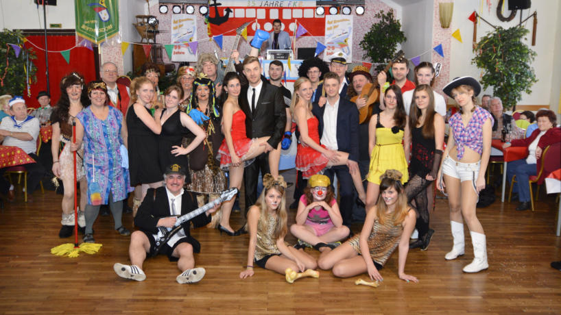35 Jahre Fasching BerthelsdorfNärrisches Jubiläum in Berthelsdorf – der Faschingsklub Berthelsdorf (FKB) feiert sein 35 jähriges Bestehen und mit ihm auch die meisten seiner treuen närrischen Fans. Auch die Funken hatten allen Grund zu feiern: Sie können auf 15 Jahre Tanz in allen Variationen zurückblicken. Zur ersten Samstagsveranstaltung vibrierte der ausverkaufte Saal der Gaststätte „Schmiedestern“ wie nie zuvor. Eine grandiose Stimmung, die sich von der ersten Minute an aufbaute und bis spät in die Nacht anhielt. Schon am Einmarsch war klar: heute ist es etwas anders: Statt wie zum traditionellem Einmarsch kam der FKB diesmal als Gugge-Orchester und heizte gleich erst einmal die Stimmung so richtig an. Das große Funken- und Mini-Medley setzte nun noch einen drauf. Schon zur ersten Tanzrunde war die Tanzfläche voll - auch das gab es noch nie. Nun wurde zeit für die erste Szene – unter Deck der „Fürst-Klass-Bounty“ gab es sonderbare Geräusche und Maat Viktor löste das Geheimnis. Schon war das Männerballett zum ersten mal gefragt und sonderbare Kühe stolperten über den Saal, ganz zum Leiden der Reinigungskraft Erna, die fortan ab zu für Ordnung sorgen muss und auch mal mit dem Kapitän zusammenstößt. Dem folgten Schlag auf Schlag Gäste aus 35 Jahren FKB – unter ihnen Rickie mit ihrem Popsofa, Mireille Mathieu, Antonia, dressierte Tiger und andere Figuren aus dem Zirkus Bertholdi und auch Gäste aus Film und Fernsehen lassen nicht lange auf sich warten. Mancher der Gäste kann sich sicherlich auch an die Geschichte um „Euro Euro und was nun?“ erinnern – das Männerballett auf jeden Fall.Die große Show im Oberdeck lässt nach einem Medley der Funken die Zwanziger Jahre aufleben – CanCan, ein ganz besonderer Boxkampf, eine magische Zaubershow und schließlich noch ein absoluter Weltstar auf der Bühne – was will man mehr!Wer jetzt denkt, das war´s, der irrt. Da legen die Berthelsdorfer Narren noch einen drauf und servieren eine Geburtstagstorte...... Lange Weile in den Programmpausen? Aber nicht doch! DJ Thomas Tippner verstand es super, das närrische Publikum in Schwung zu halten und konnte mit seiner unglaublichen Polonaise wieder (fast) alle in seinen Bann ziehen und durch den Saal wandern lassen.....